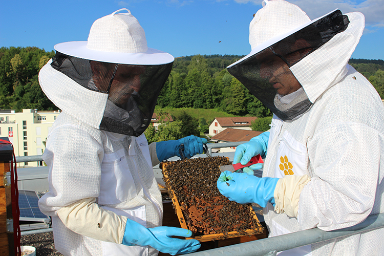 Seit einigen Jahren wohnen auf den Dächern des Sunnige Hof im Mattenhof Bienenvölker. Für das Wohl der sechsbeinigen Bewohnerinnen sorgen unsere Gärtner Nach einer zweijährigen Imkerausbildung haben sie im Frühjahr 2018 im Mattenhof mit dem Imkern begonnen.