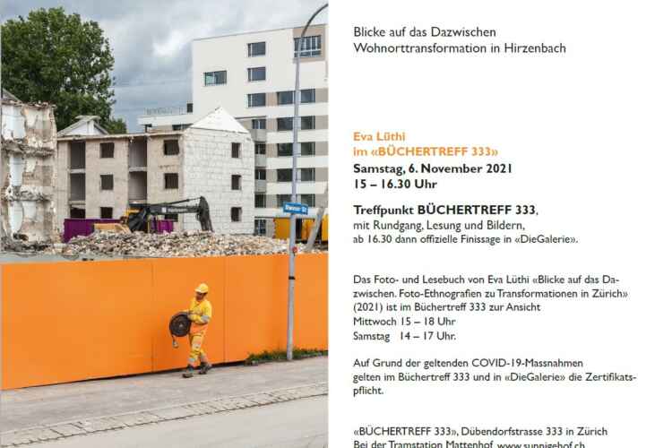 Eva Lüthi greift es mehrschichtig auf, anhand einer von 2011 bis 2017 intensiv beobachteten sich entleerenden Wohnsiedlung hin zu neu bewohnten Ersatzneubauten an der Altwiesenstrasse. Wie und von wem wurden die sich wandelnden Räume (zwischen-)genutzt? Wie verändert sich der Blick aus den Fenstern der Gartenstadt? Das erforschte Dazwischen ist eine der vier gezeigten städtischen Transformationen aus ihrem Buch «Blicke auf das Dazwischen», das im März 2021 im Seismo Verlag erschienen ist.