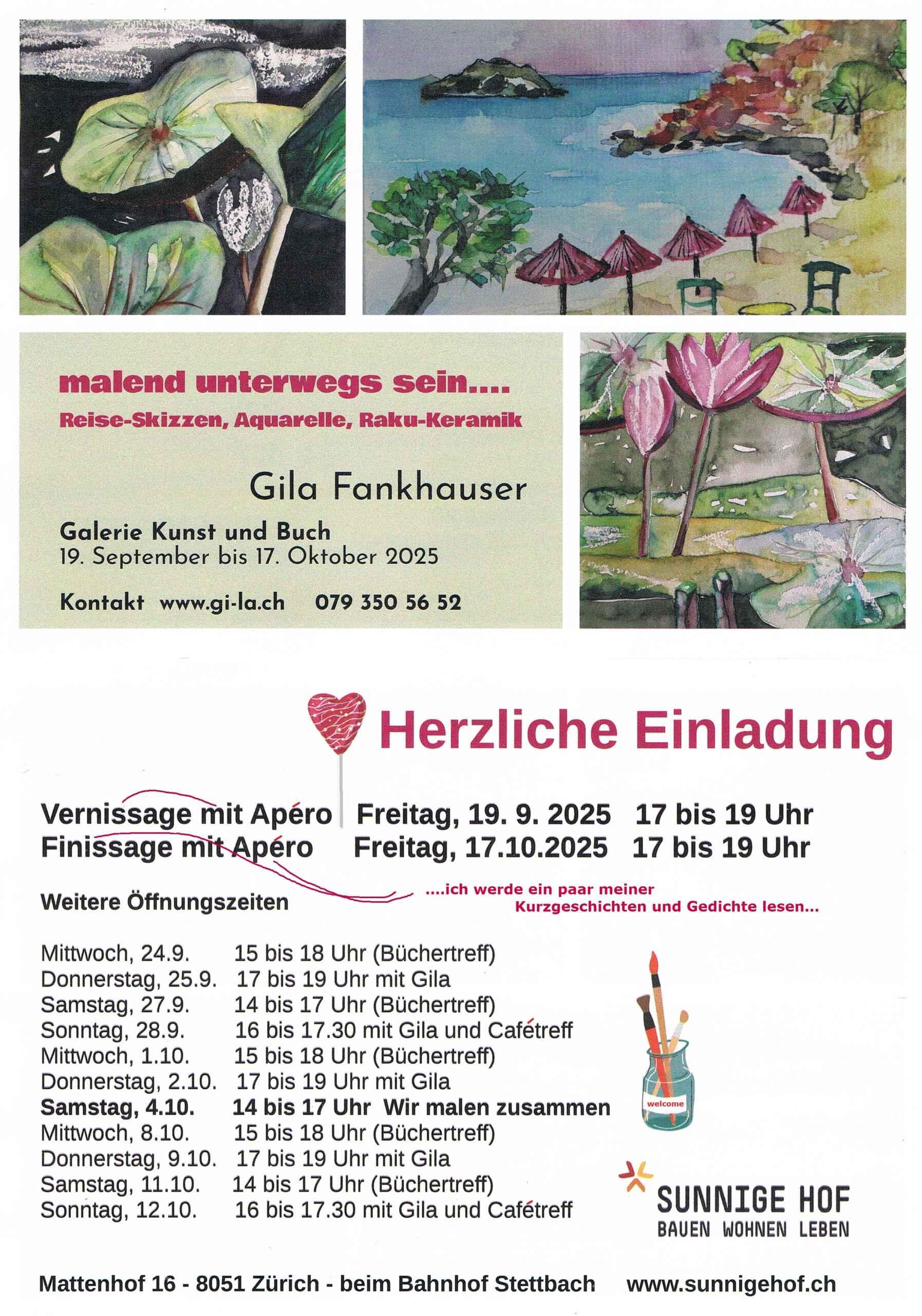 Am 8. August 2020 organisiert die Künstlerin Ursula Lier-Böhler die Vernissage Ihrer Ausstellung in DieGalerie an der Dübendorferstrasse 333 in Zürich, von 17:00-20:00 Uhr.