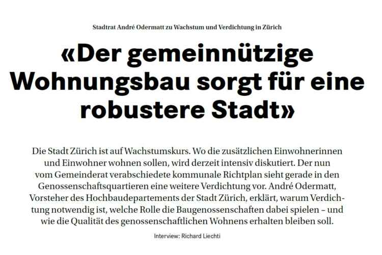 André Odermatt, Vorsteher Hochbaudepartement Stadt Zürich sprach mit der Zeitschrift…